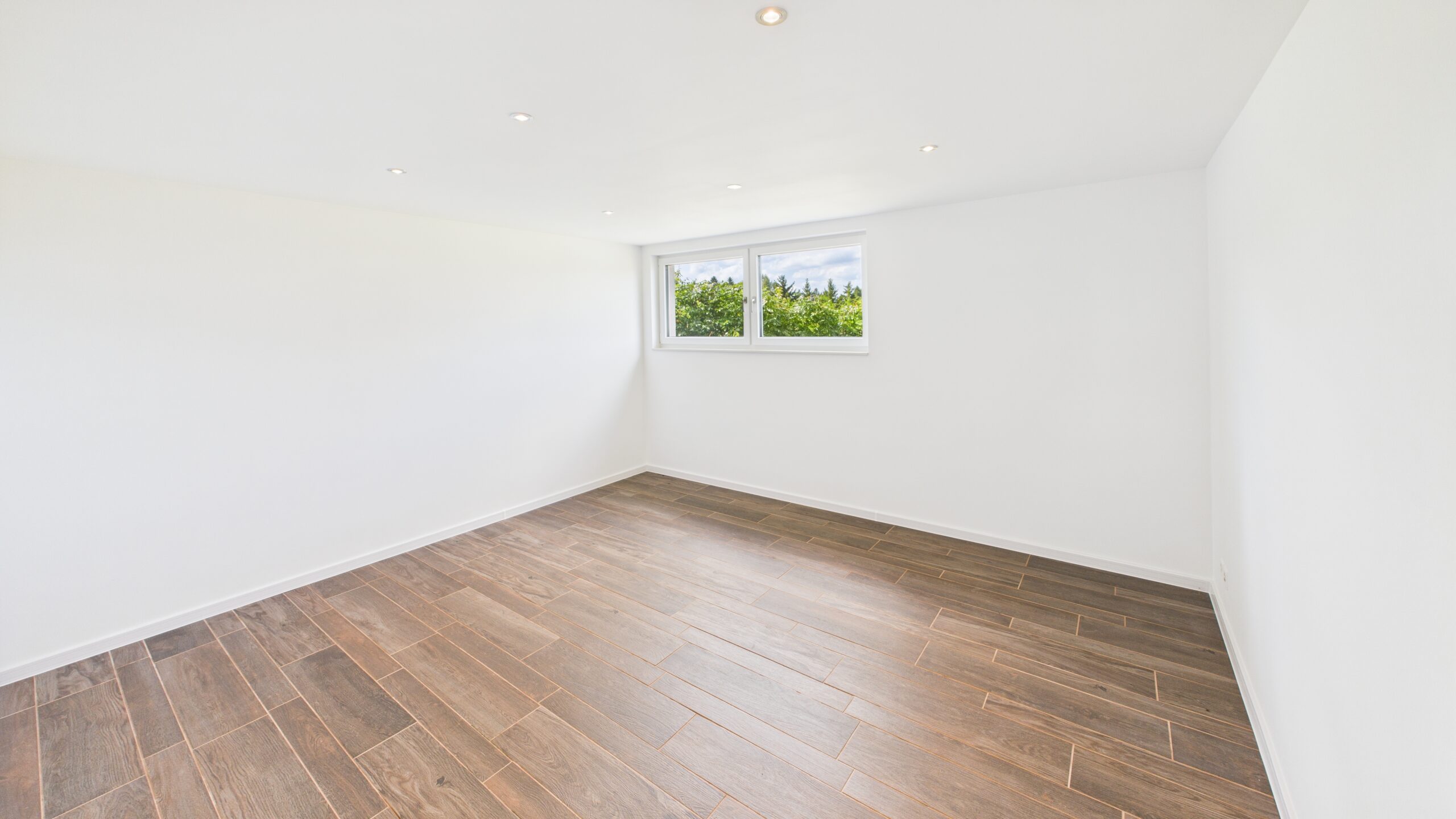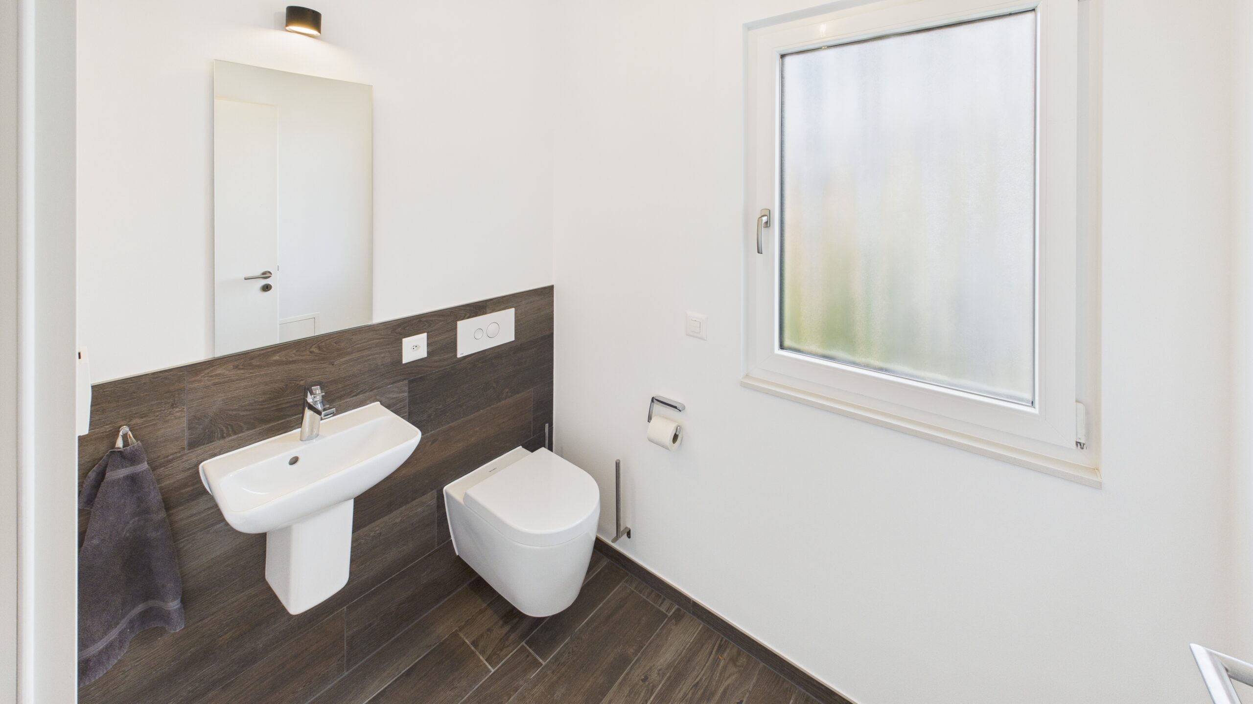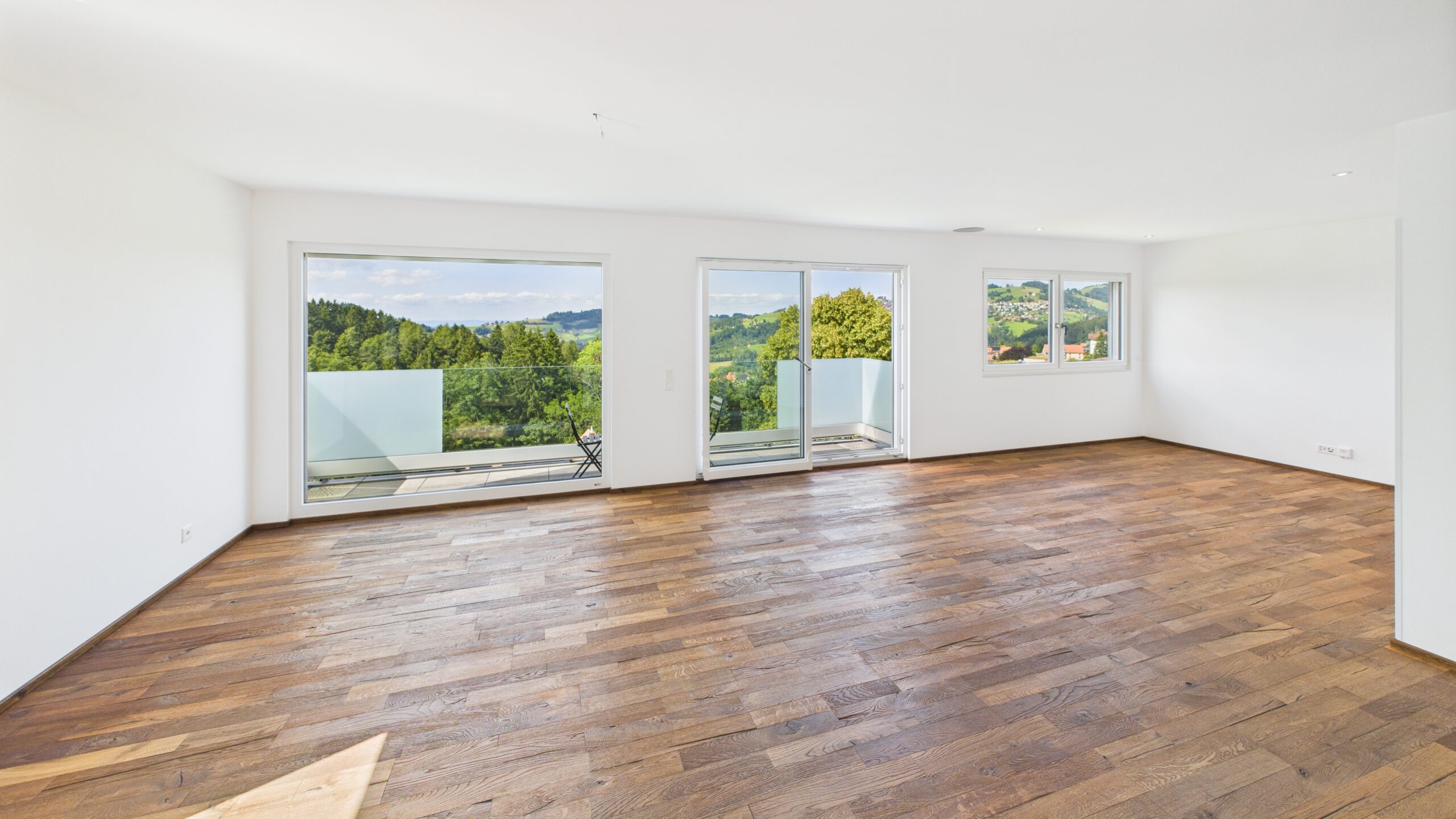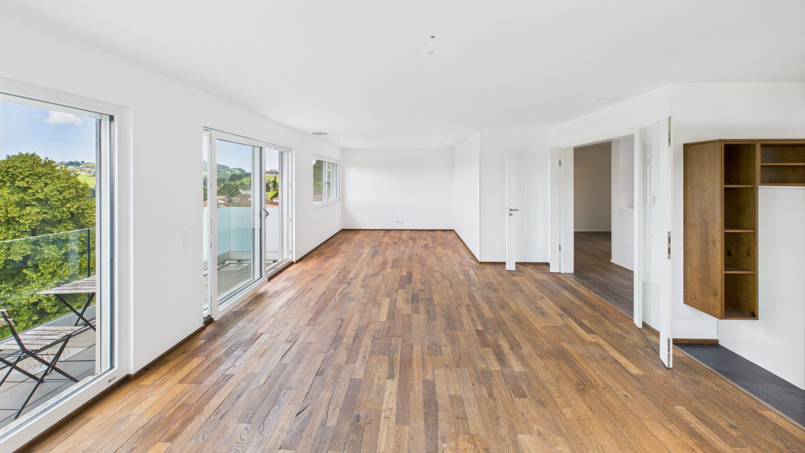 Auf insgesamt drei Etagen erstreckt sich die grosszügige Nettowohnfläche von knapp 200 qm, die durch die hochwertige Elementbauweise besticht. Mit 6.5 weitläufigen Zimmern bietet dieses Haus ausreichend Platz für die gesamte Familie. Sie betreten das Haus im obersten Stockwerk, wo sich der lichtdurchflutete Eingangsbereich befindet. Hier gelangen Sie in die offene und einladende Küche sowie in das heimelige Wohn- und Esszimmer. Diese Bereiche sind ideal für gesellige Stunden mit Familie und Freunden. Das Gäste-WC ist ebenfalls auf dieser Etage untergebracht. Der nordseitige Balkon ermöglicht Ihnen einen unverbaubaren Panoramablick auf die umliegende Landschaft.