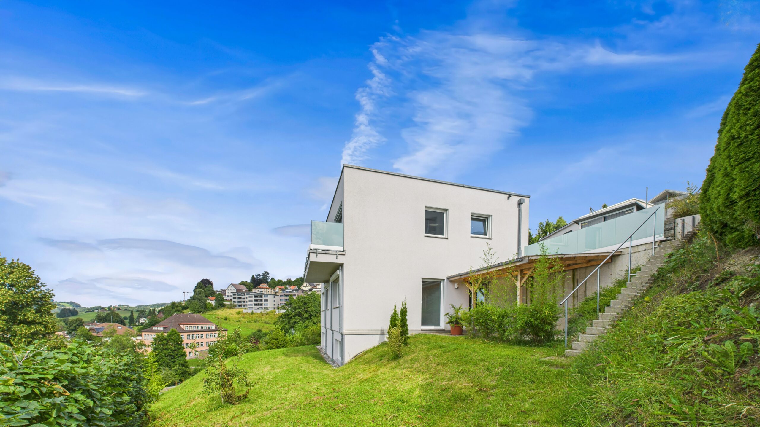 Auf der sonnigen Südseite offenbart sich ein geschmackvoll gestalteter Terrassensitzplatz, der Sie dazu einlädt, die warmen Sonnenstrahlen zu geniessen. Im ersten Untergeschoss finden Sie ein ansprechendes Masterbad sowie drei geräumige Zimmer. Der nach Westen ausgerichtete Aussensitzplatz ergänzt diese Etage perfekt und ist ideal für entspannte Abende im Freien. Das zweite Untergeschoss beherbergt das zweite Masterbad, mit einem praktischen Waschturm und zwei weitere Zimmer, die sich hervorragend als Gästezimmer und für Homeoffice eignen. Die Technik des Hauses ist durch eine effiziente und umweltfreundliche Wärmepumpe optimiert, die sowohl die Bodenheizung als auch die Warmwasseraufbereitung unterstützt und für ein angenehmes Raumklima sorgt. Zusätzlich steht Ihnen vis a vis ein Doppelcarport zur Verfügung. Dieses Haus ist nicht nur ein Rückzugsort, sondern ein echtes Zuhause mitten in der Natur. Geniessen Sie das idyllische Leben in den Appenzeller Bergen und die Nähe zur Stadt und zahlreichen Freizeitmöglichkeiten.